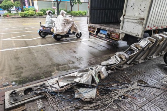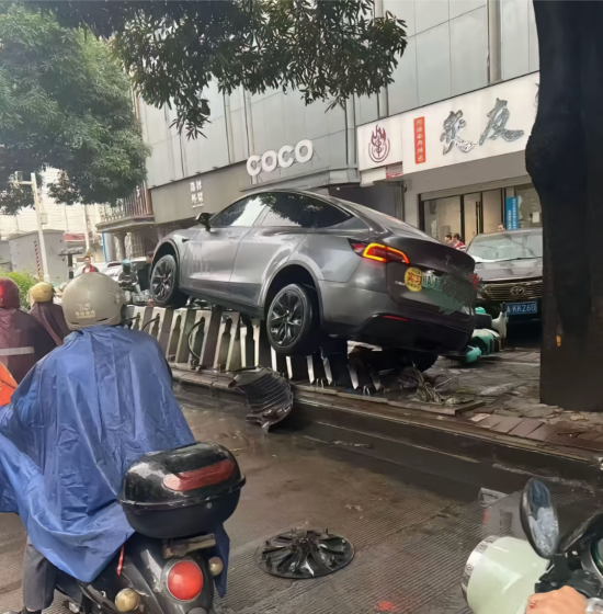 南宁一特斯拉失控 “骑”上公共自行车桩