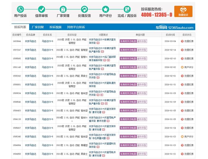 马自达CX-5论坛长安马自达CX-5车辆天窗支架开裂