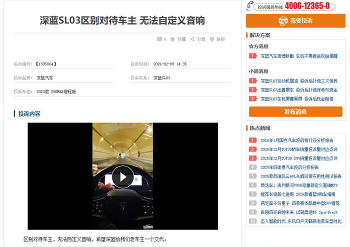 深蓝SL03论坛深蓝SL03区别对待车主 无法自定义音响