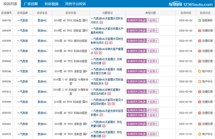 奥迪A4L论坛奥迪A4L天窗漏水造成车内积水