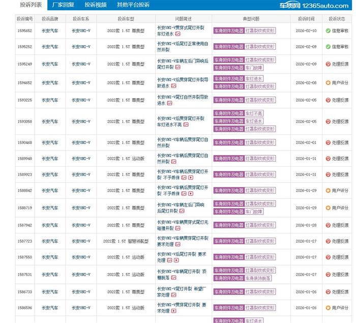 长安UNI-V论坛长安UNI-V尾灯自然开裂导致进水 要求处理
