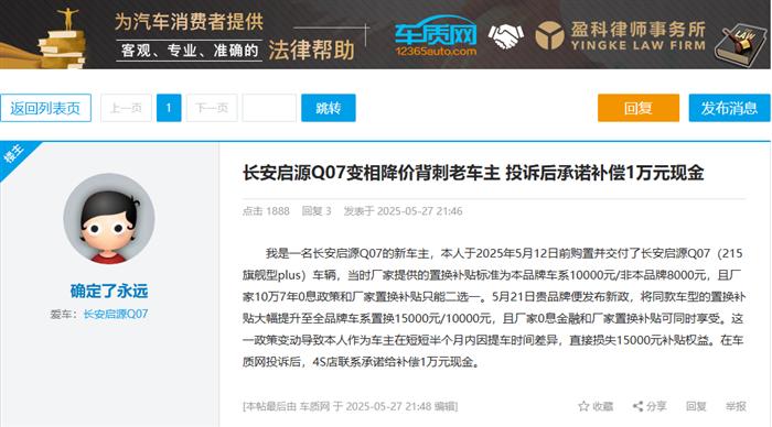 长安启源Q07新款车型上市未提前告知