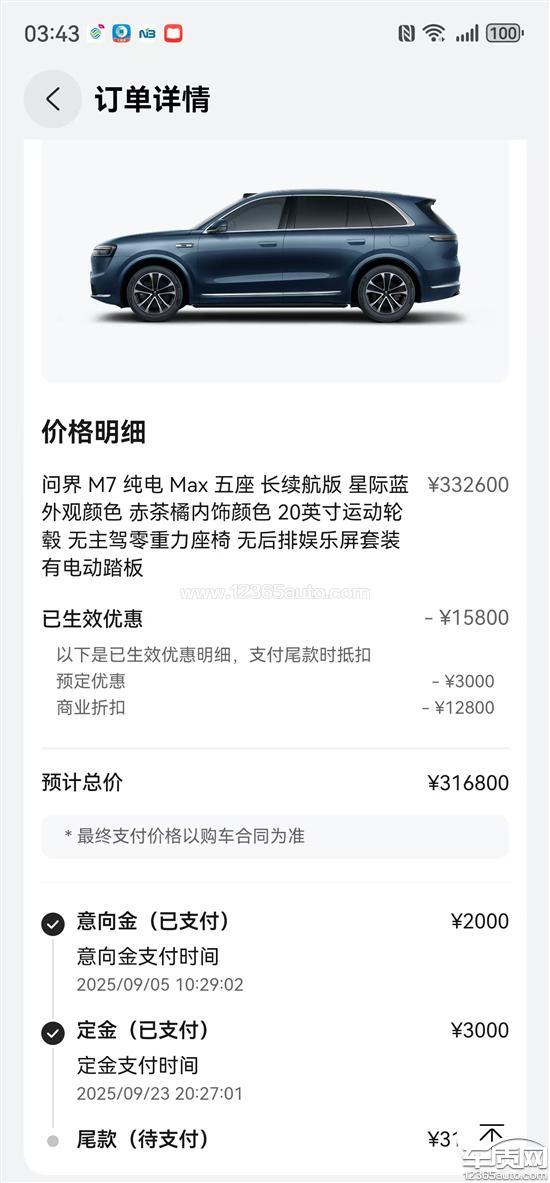 鸿蒙智行问界M7不按承诺交车导致损失补贴