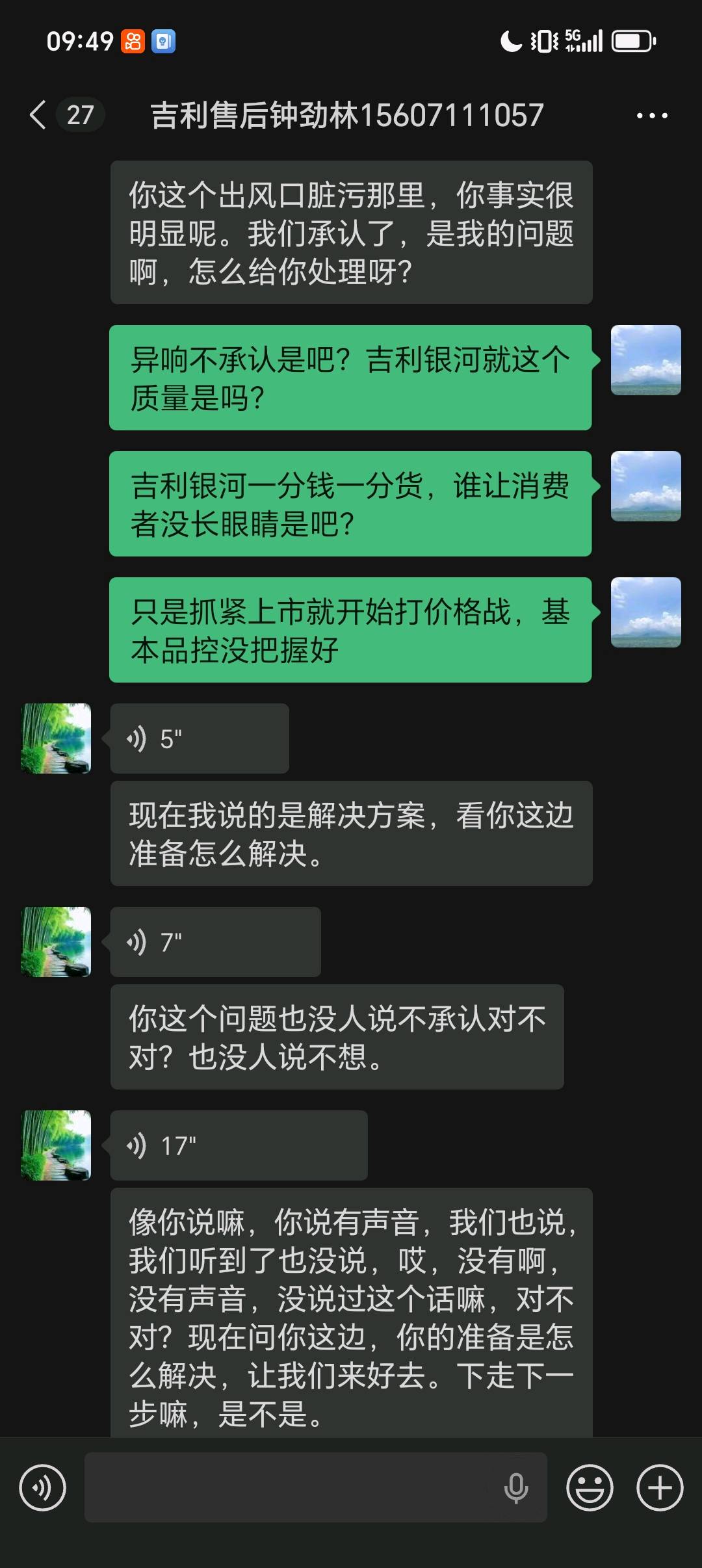 银河M9新车异响和脏污问题