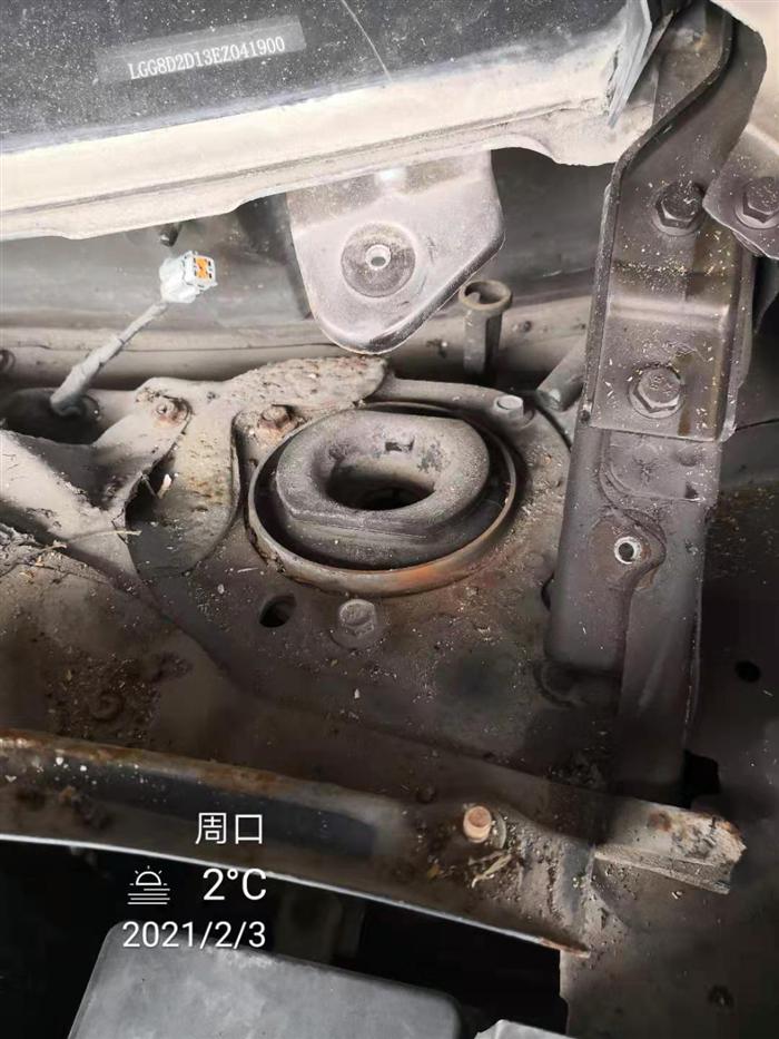 景逸X5左前减震锈蚀脱落让人气愤 这车还敢开吗?