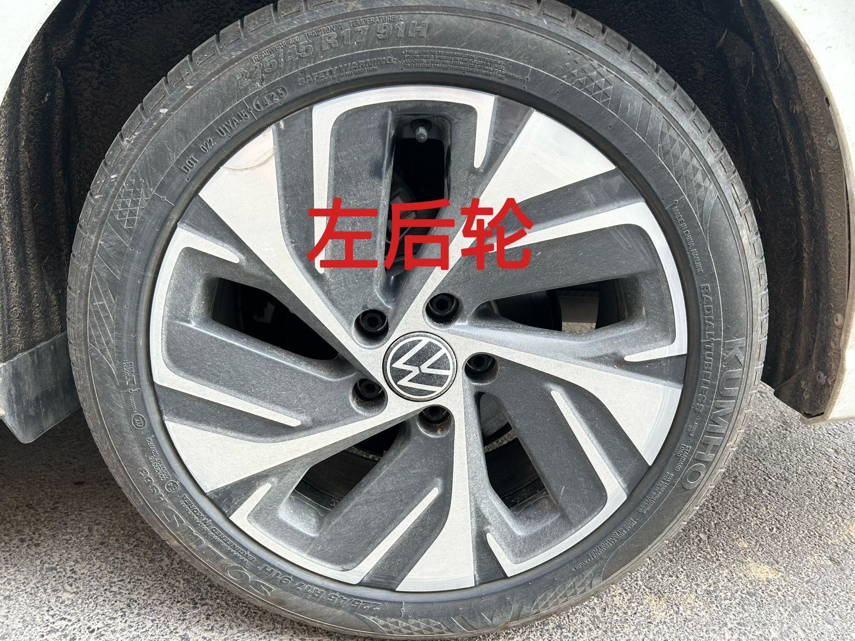 大众宝来车辆锦湖轮胎严重老化开裂