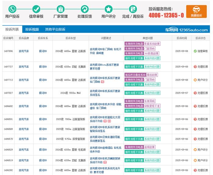 银河E8车机系统厂家迟迟不更新